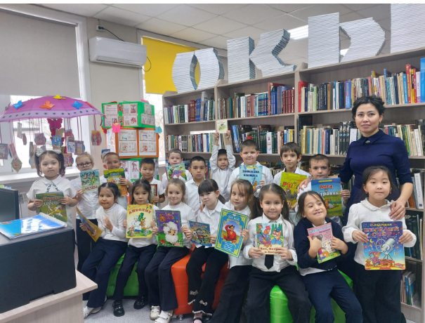 Балалар кітапқа құрметпен қарау мен кітапхананың тәртібін сақтауды үйренді.
