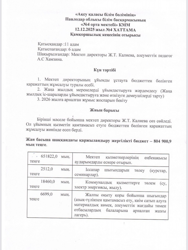 12.12.2025 жыл №4 Хаттама Қамқоршылық кеңесінің отырысы Posted on 12.12.202525.12.2025 By admin Қамқоршылық кеңес